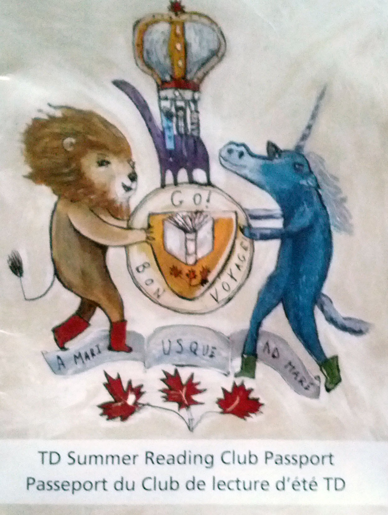 トロントの小学生の夏休みは9週間と長い。その間、本を読んでもらおうと図書館が毎年なんらかのテーマで、子供たちの足を図書館へ引き寄せるようがんばっている。今年(2013)のテーマは「旅」。今年の夏、小学生なら誰もが図書館で「パスポート」がもらえる。本一冊読むたび、図書館員に報告をする。サイコロを転がし、出た数字にそった質問に答える。例えば:「登場人物?」「どんな終わりだったのか?」「良かったところは?」「気に入らなかったところは?」など、その本について語ってもらった後、パスポートに張る大きなシールがもらえる。