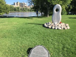ウィニペグを流れるレッド・リバー河畔に建てられた殺害または失踪した先住民女性のための記念碑