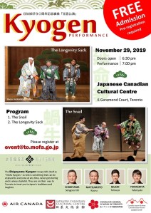 昨年11月下旬の週末「お豆腐狂言」で有名な茂山千五郎家が京都からトロントへ訪れ、狂言三昧の贅沢な数日を過ごすことができた。笑いは時代、文化、そして言葉の壁をも突き破る魔法のようなものだとこの秋のトロント公演で実感した。