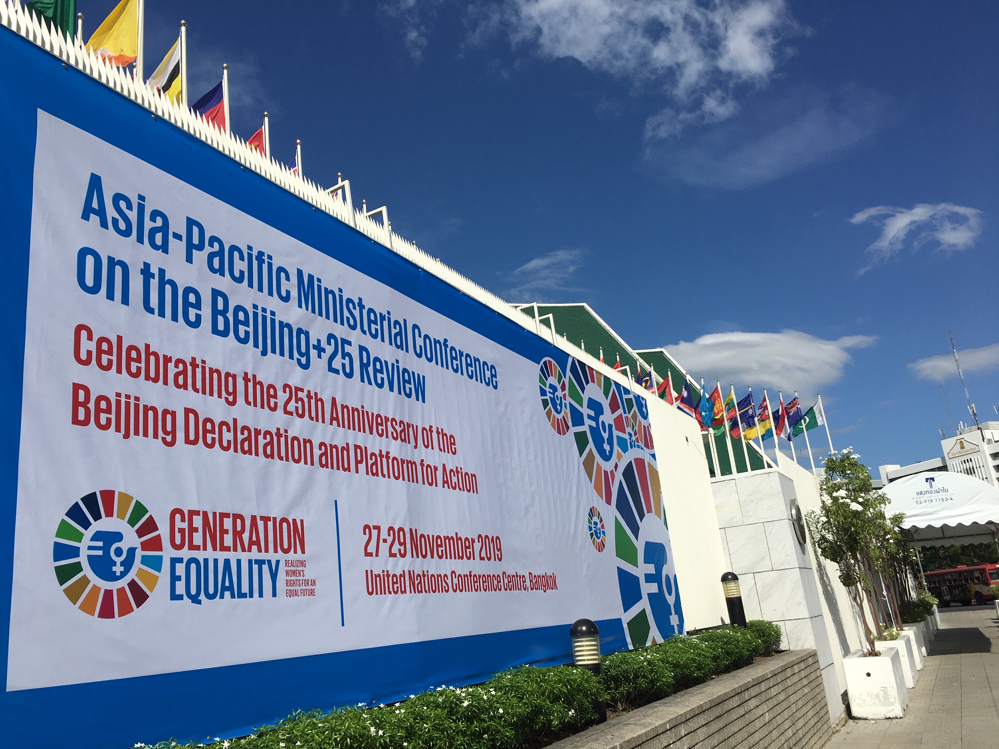 これは1995年に北京で行われた第4回世界女性会議から25周年ということを指している。北京で行われた会議には世界中の人々と共に日本からも5000人以上の人が参加した。本会議は女性の人権、ジェンダー平等に関する包括的な国際文書である「北京行動綱領」を採択し、その後の各国のジェンダーの取り組み指針となっている。日本でもこの動きが男女共同参画社会基本法の制定につながり、その後の配偶者暴力禁止法制定への道筋をつけた。